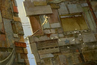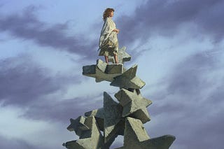 In the Portals paintings, enlightenment is found only when one gets beyond the architecture of established formal belief systems.