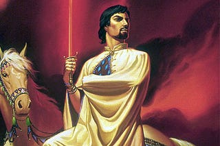 Cover illustration for Wielding a Red Sword by Piers Anthony