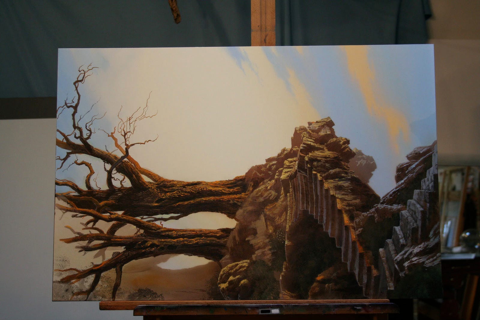 I’m often encouraged to share my process. Fortunately I did snap a photos of this painting along the way from the early stages of the underpainting as I worked out the details.