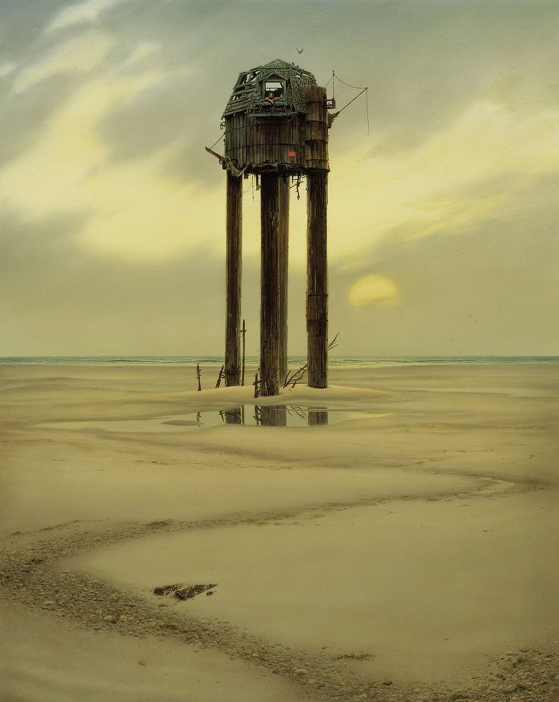 While the figure in the tower was watching her TV, the tide came in and then receded, taking her boat and ruining her ladder in the process. Now she’s stranded...